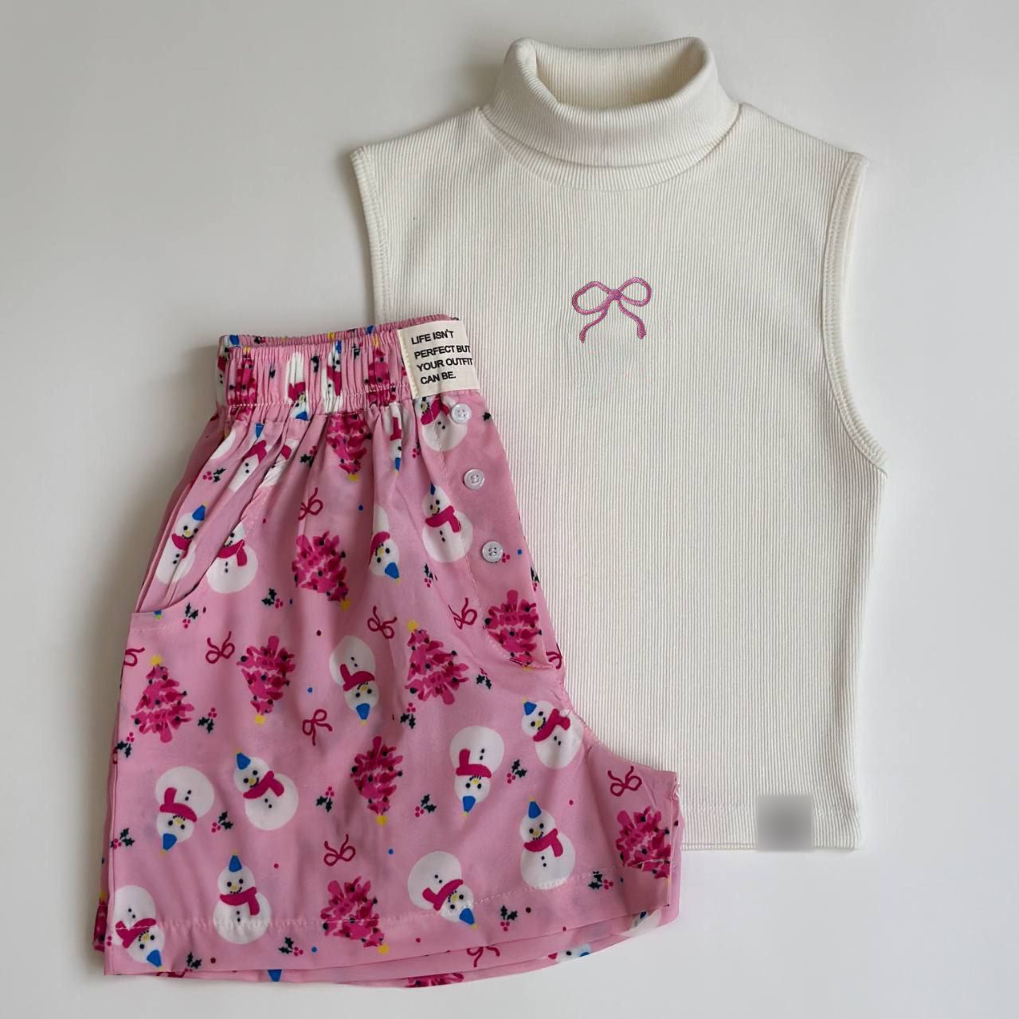 تاپ شورت یقه اسکی چاپ عروسکی نخ پنبه گرم بالا کشباف
